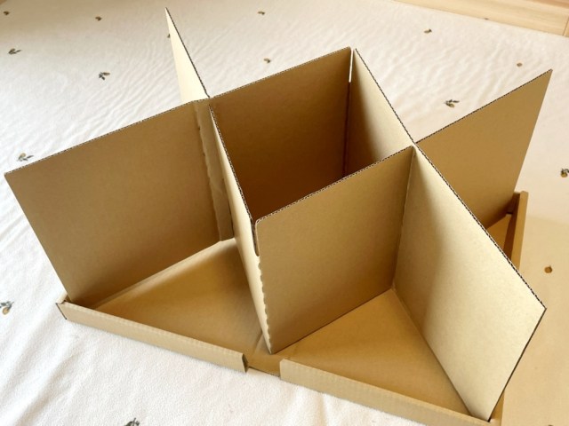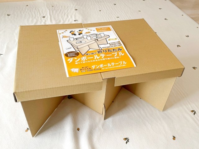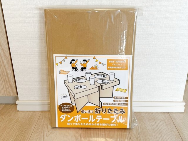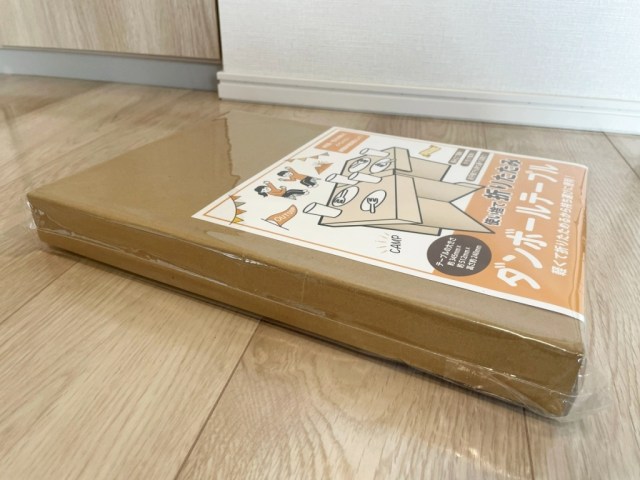 We actually bought this 487-yen (US$3.15) Folding Cardboard Table a while back, through Amazon Japan, while putting together a disaster preparedness kit. It says right there on the packaging, though, that it’s perfect for outdoor events like cherry blossom parties, and since we’ve got a bunch of those coming up in the very near future, we decided to test the table out at home first to see if it really works as well as advertised.